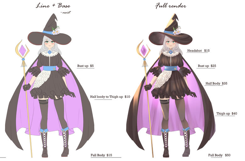 As for line + base assist, I can use lineweight (with various brush size) or one brush size without lineweight. Additional charge required based om complexity